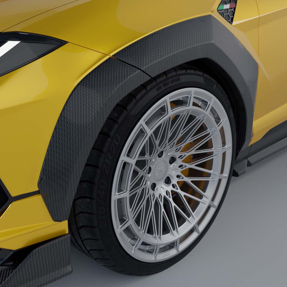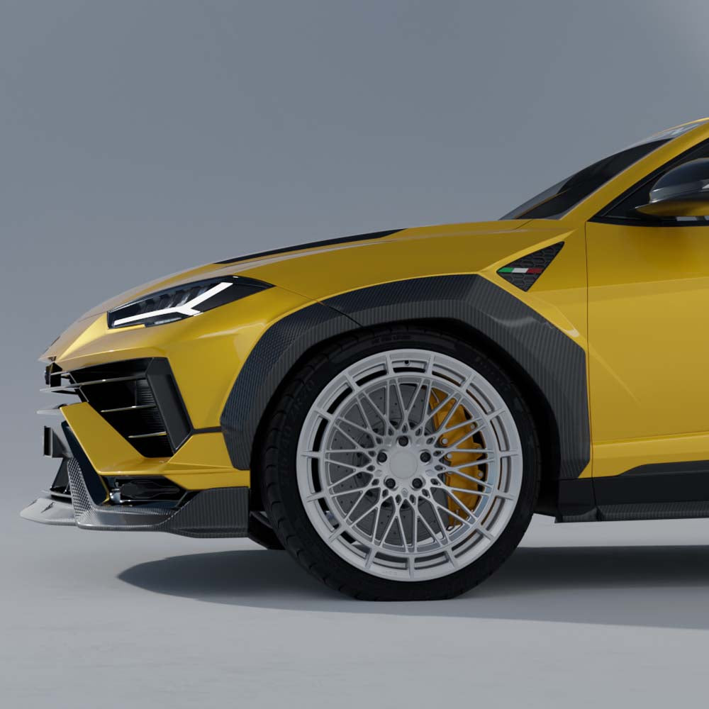 CT Carbon presents this full pre-preg carbon fibre kit for the Lamborghini Urus S, a unique and aggressive 6-piece kit including wide arches, designed by our in-house to transform your vehicle.