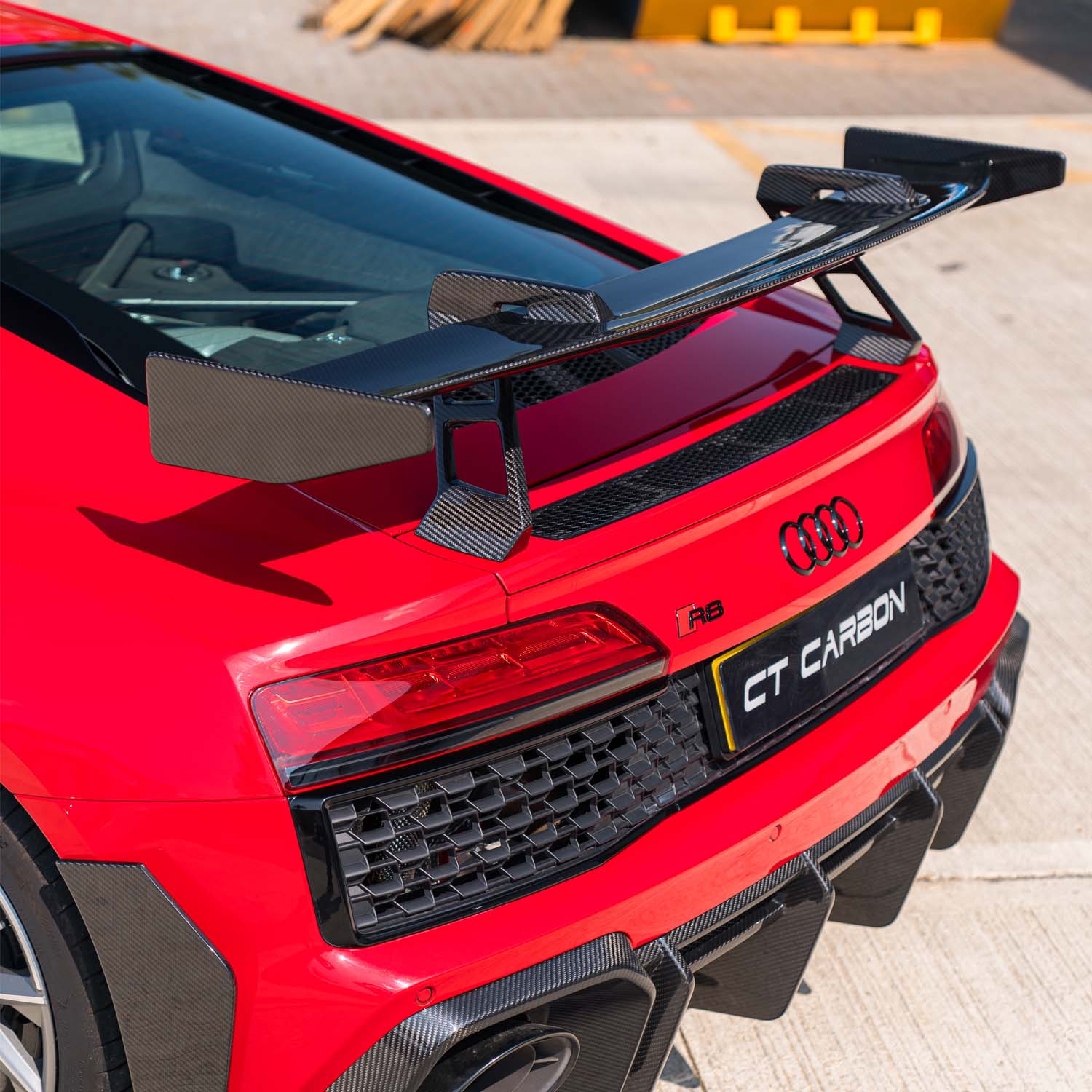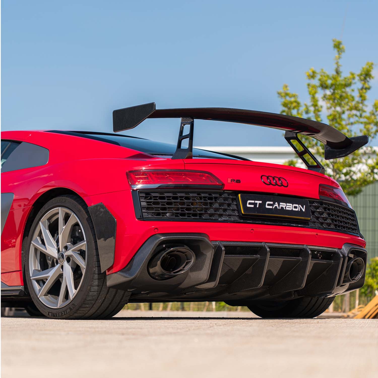 This Audi R8 V10 Gen 2.5 has been transformed with our in-house designed CT Design full pre-preg/dry carbon fibre kit by CT Carbon. A high-quality, aggressive new style for the vehicle.