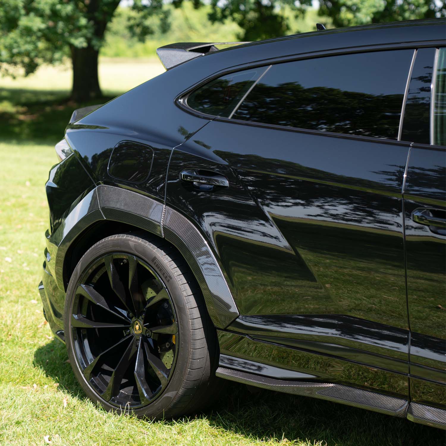 This kit also includes a Carbon Fibre Diffuser and Roof and Boot Spoiler. This creates a much more aggressive look to the rear end of your Urus.