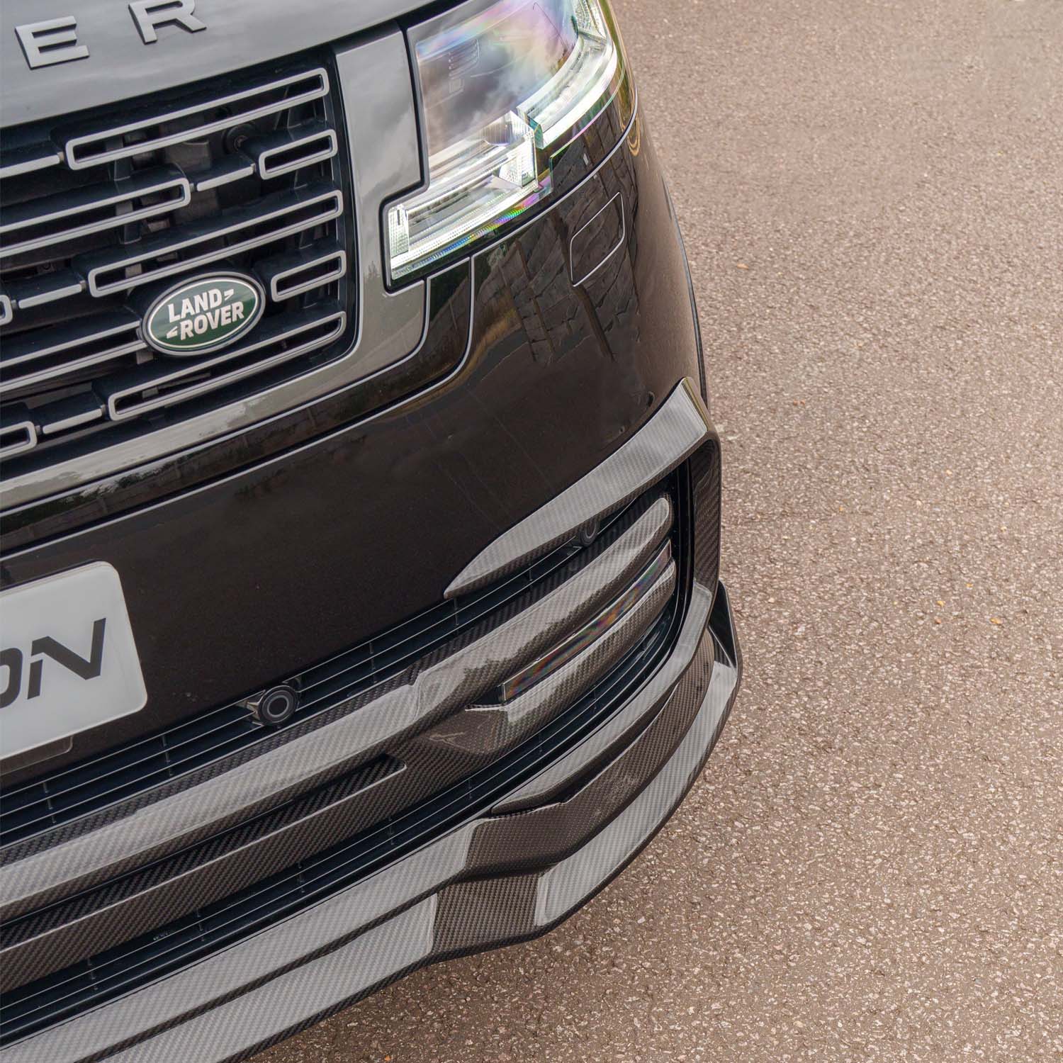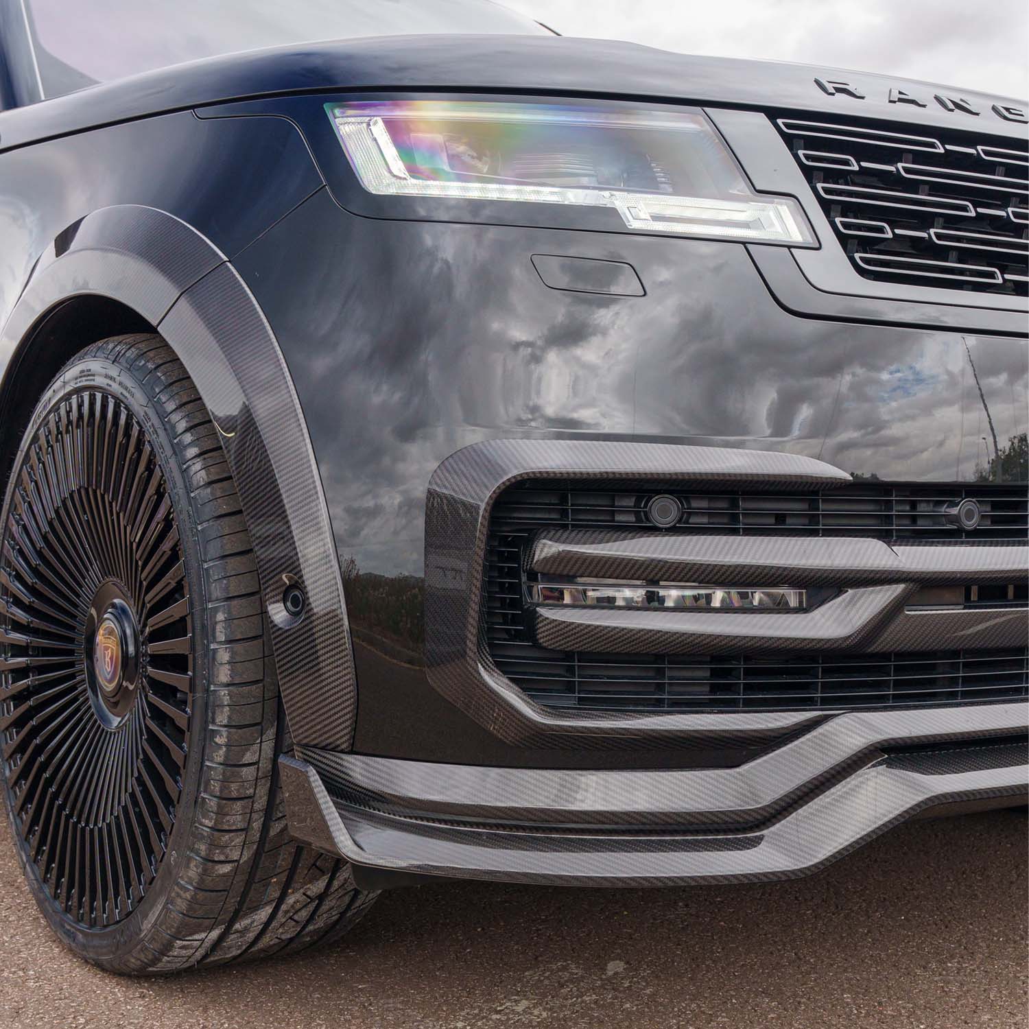 This kit also includes a Carbon Fibre Splitter, Front Grille Trim and Bumper Trim. This creates a much more aggressive look to the front end of your Range Rover.