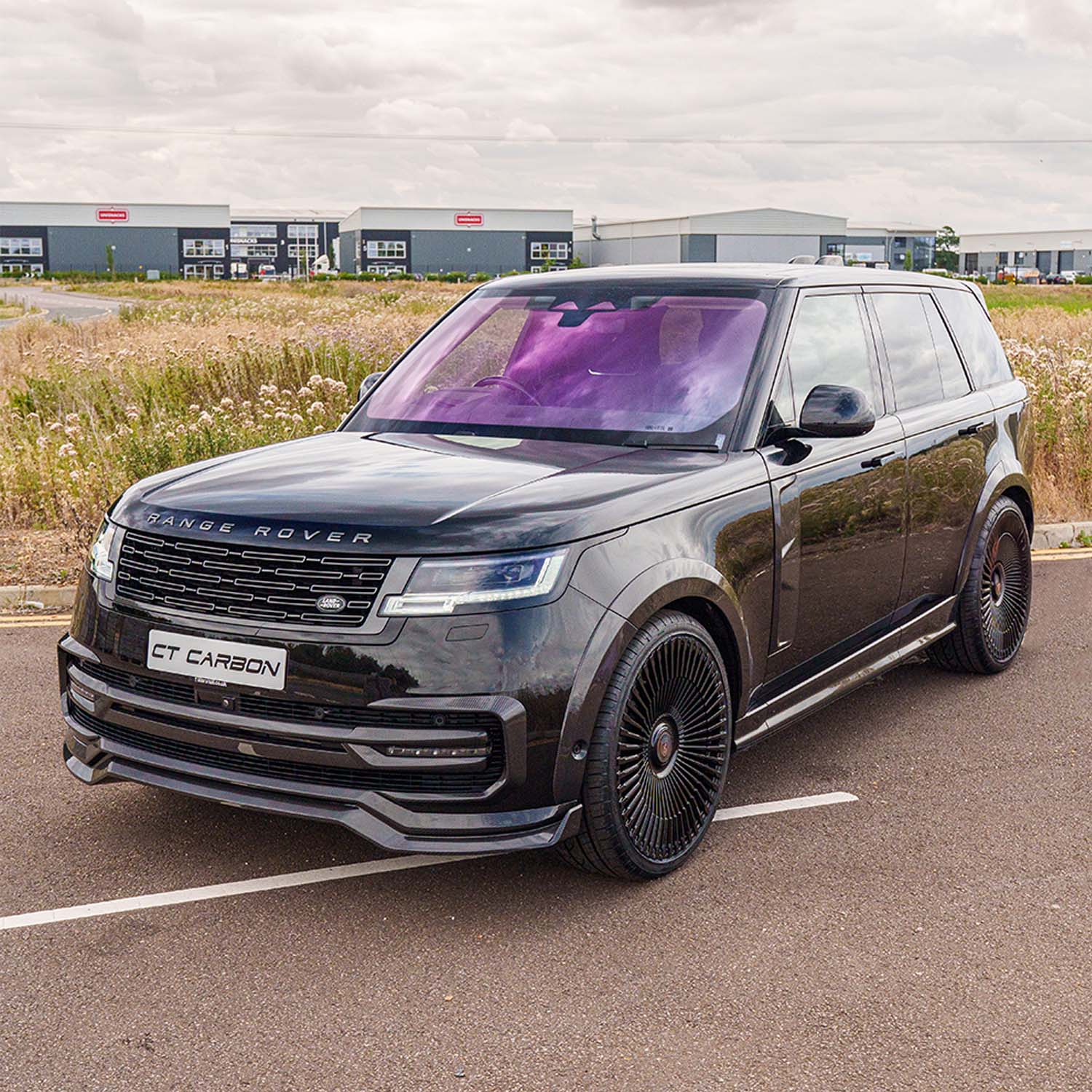 This Range Rover L460 has been transformed with our CT Design in-house designed full pre-preg/dry carbon fibre kit by CT Carbon. A high-quality, unique and aggressive new style for the vehicle.