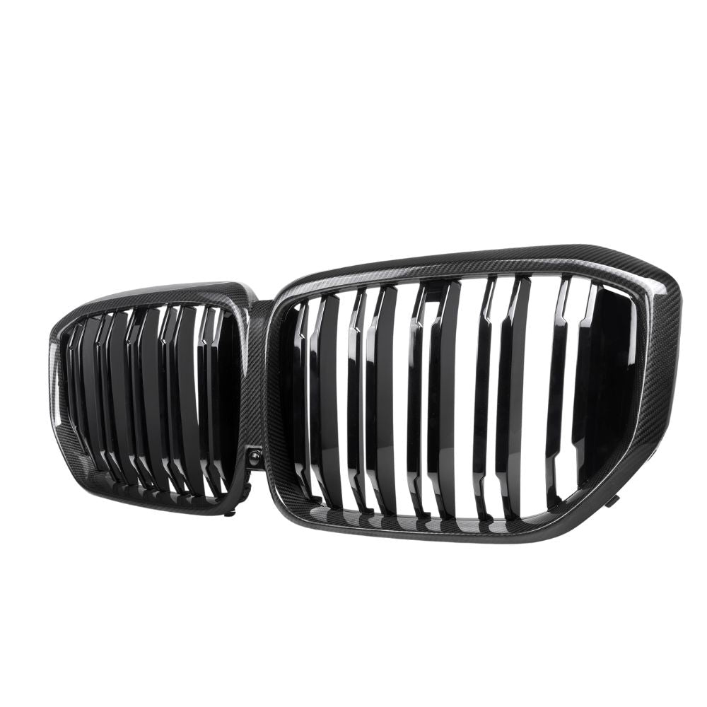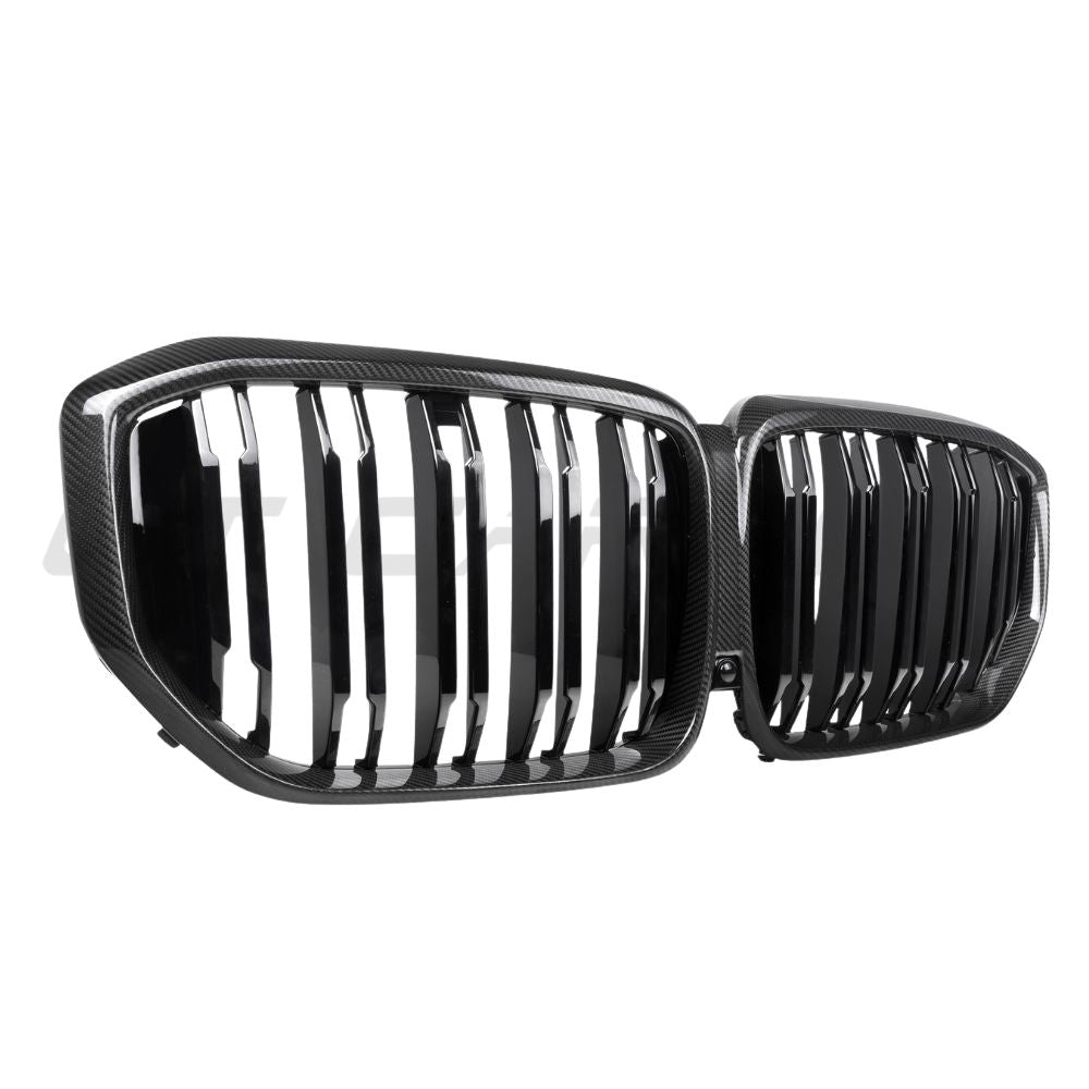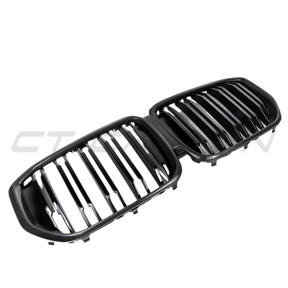 Upgrade your BMW X5 G05 LCI with the CT Carbon's double-slat front grille made from genuine pre-preg/dry carbon fibre, enhancing your vehicle's appearance with its high gloss finish.