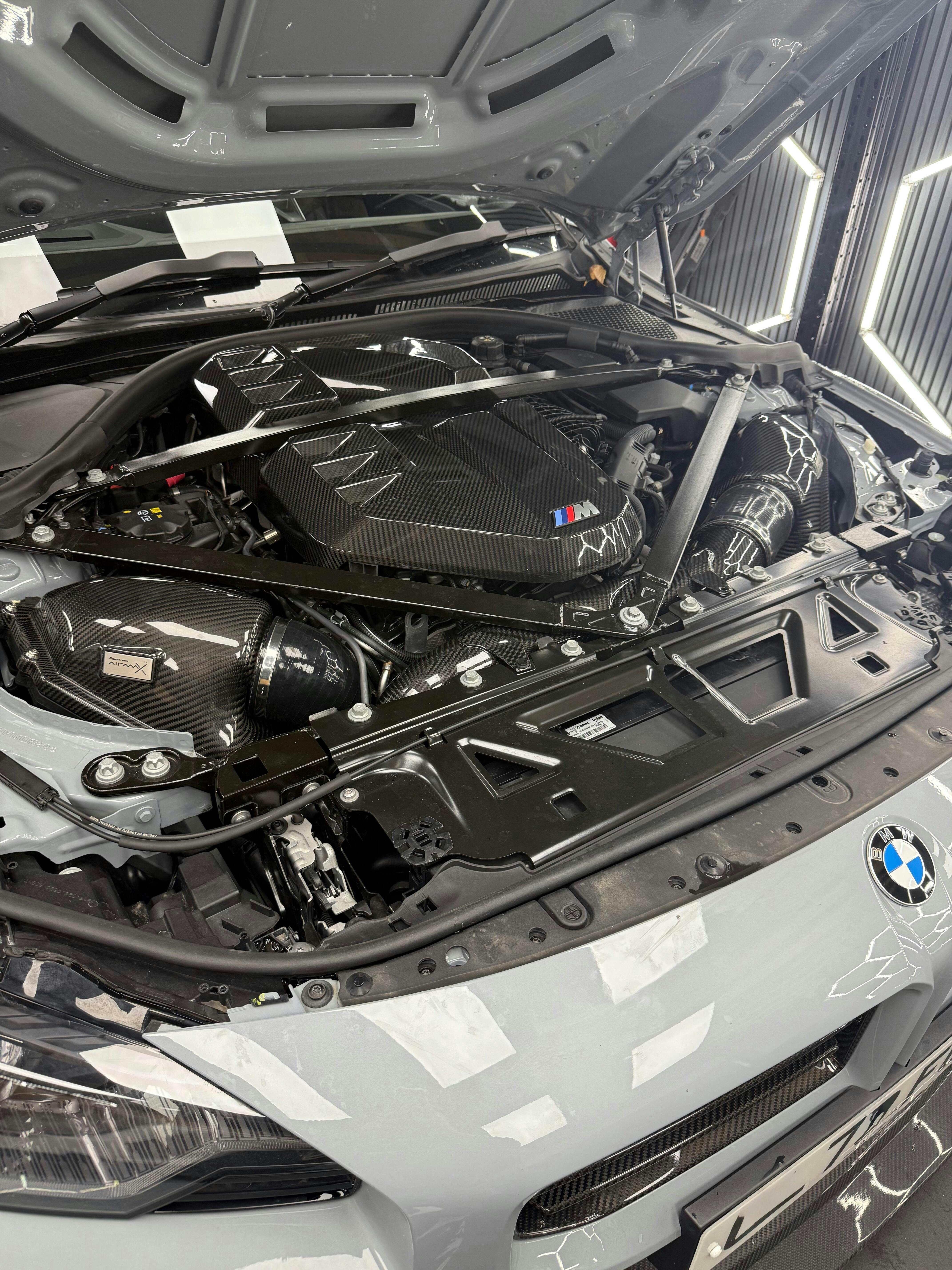 CT Carbon engine cover made from high-quality pre-preg carbon fibre, made to fit the new BMW M2, M3 and M4.